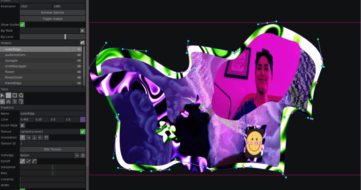 David Lynch once said that “sound is 50% of film”. My theory was that lighting is the other 50% of music, a theory that was proved unanimously by the 60 respondants of my survey. Lighting was specifically named by performers as something they wish they had access to and named by concert-goers are something that can enhance the experience of live music immensely. As such I iterated on the visuals themselves. As a projection system like Flux could go in any direction aesthetically, for this project I achieved the visuals according to a brief by my Subject Matter Expert DJ whose brief was “disco, groovy and fluid”.