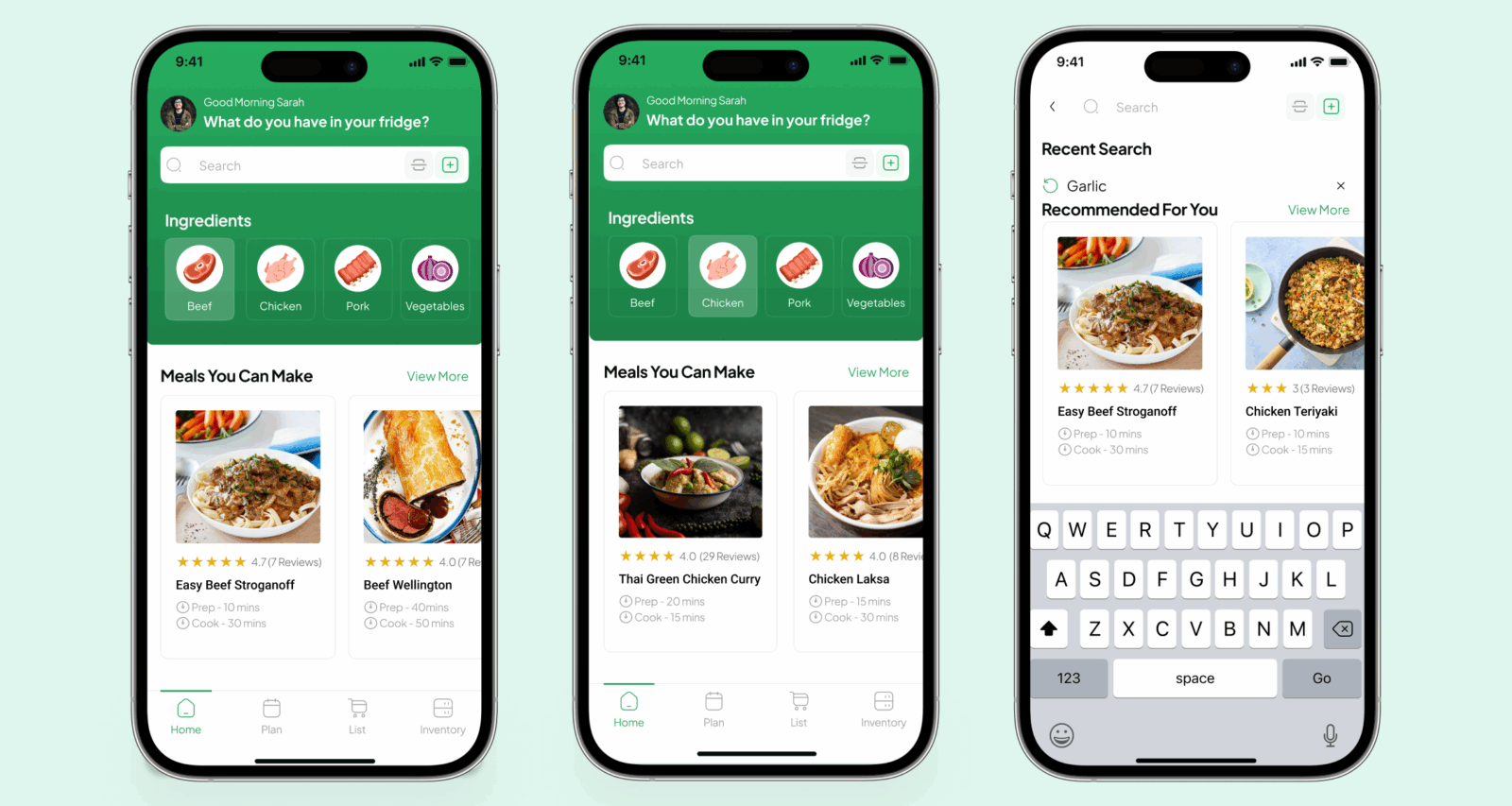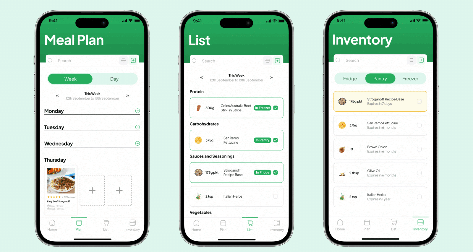 Many people struggle to keep track of ingredients they already have, often leading to duplicate purchases, forgotten items, and unnecessary food waste. While meal-planning apps exist, most depend on repetitive manual entry, which users quickly find tedious. Research revealed that the core issue isn’t a lack of motivation, it’s the mental load of staying organised. People want to plan meals efficiently, but without the effort of constantly updating lists or inventories.