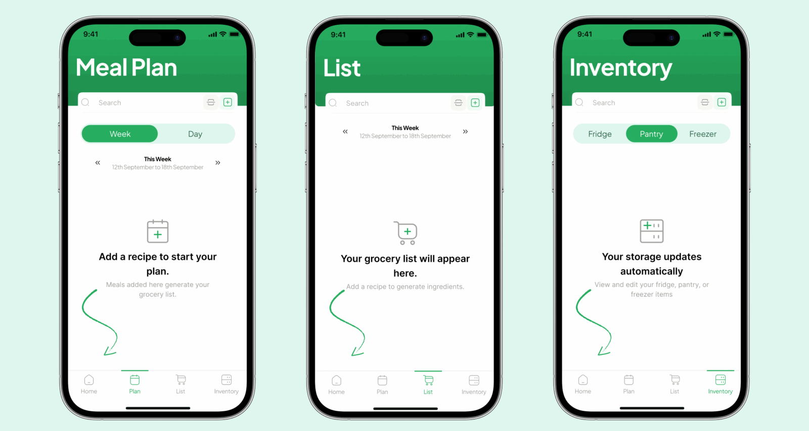 Meal Plan, Grocery List, and Inventory, perfectly connected.