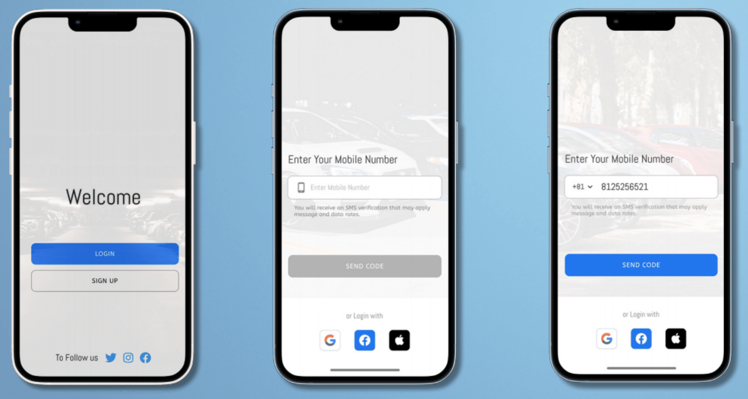 The next screen introduces a mobile number verification process — a simple, secure method that ensures quick access without the need for complex passwords. Users can either enter their number manually or select their country code from the dropdown menu.