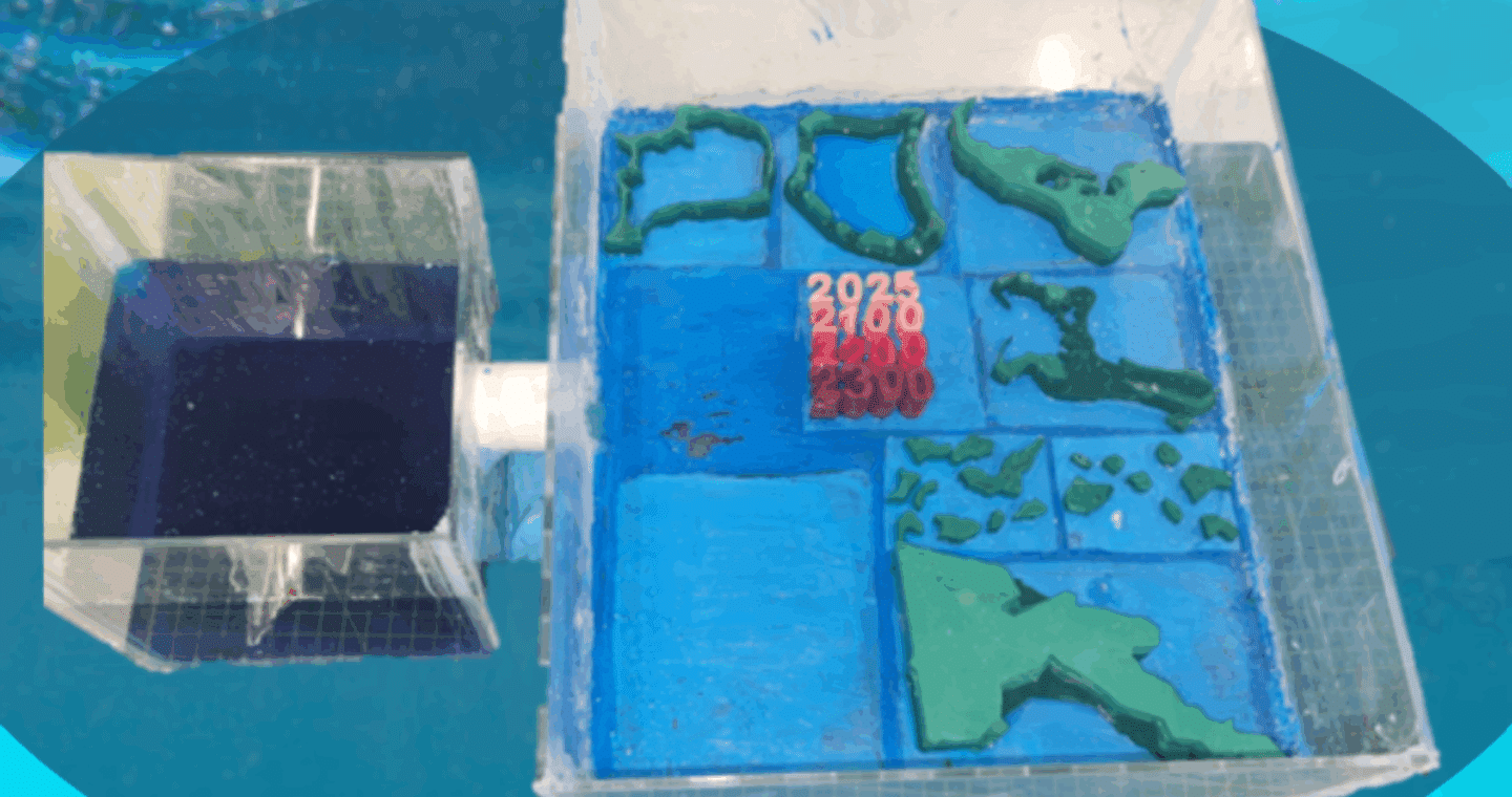 This project simulates the impacts of global warming and rising sea levels on Pacific Island countries, specifically those that are high risk of flooding. The aim of the project is to spread awareness on the topic, shed light on the nations that are disappearing and often overlooked and provide a hands on tangible experience.