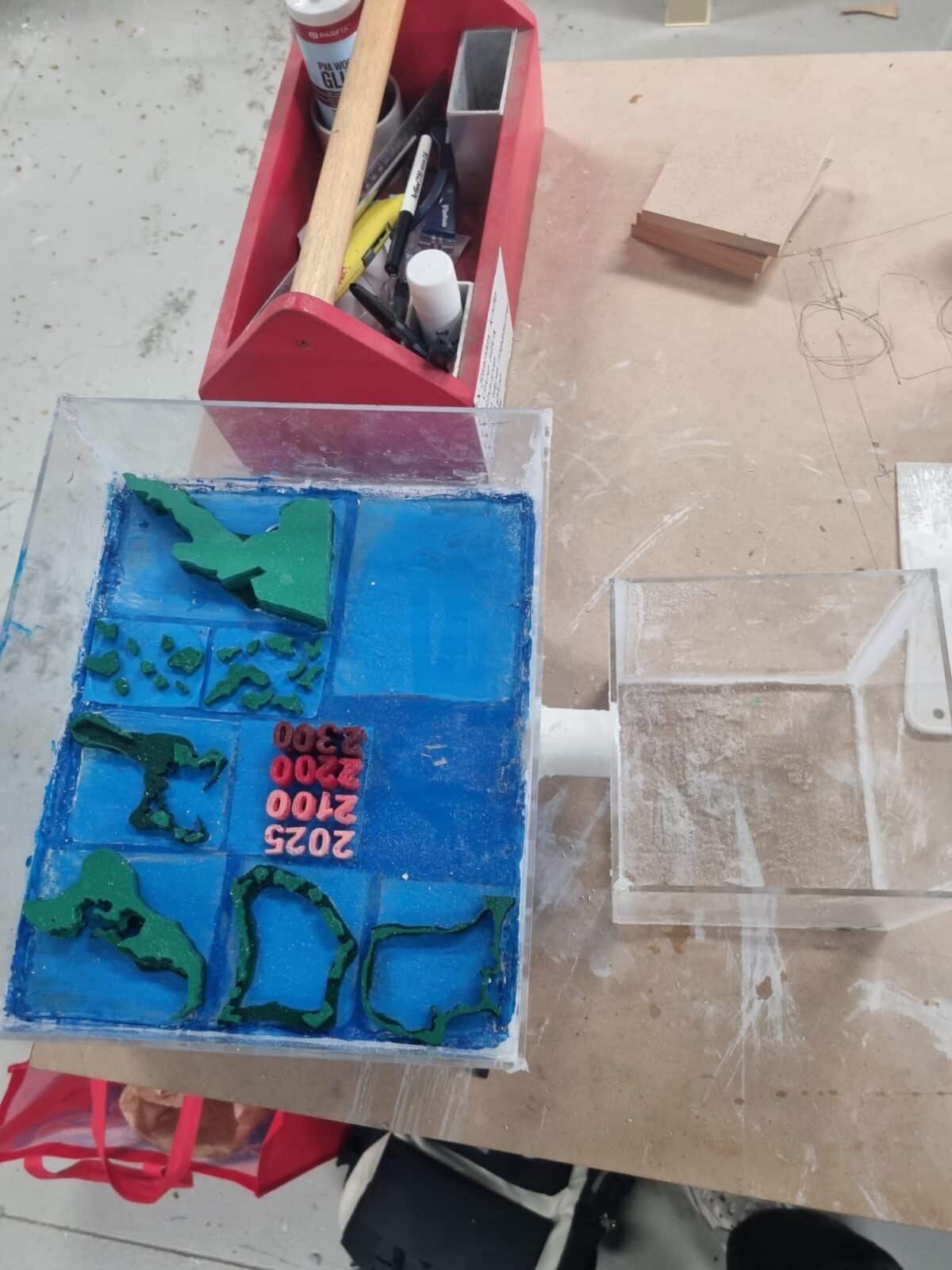 This project simulates the impacts of global warming and rising sea levels on Pacific Island countries, specifically those that are high risk of flooding. The aim of the project is to spread awareness on the topic, shed light on the nations that are disappearing and often overlooked and provide a hands on tangible experience.