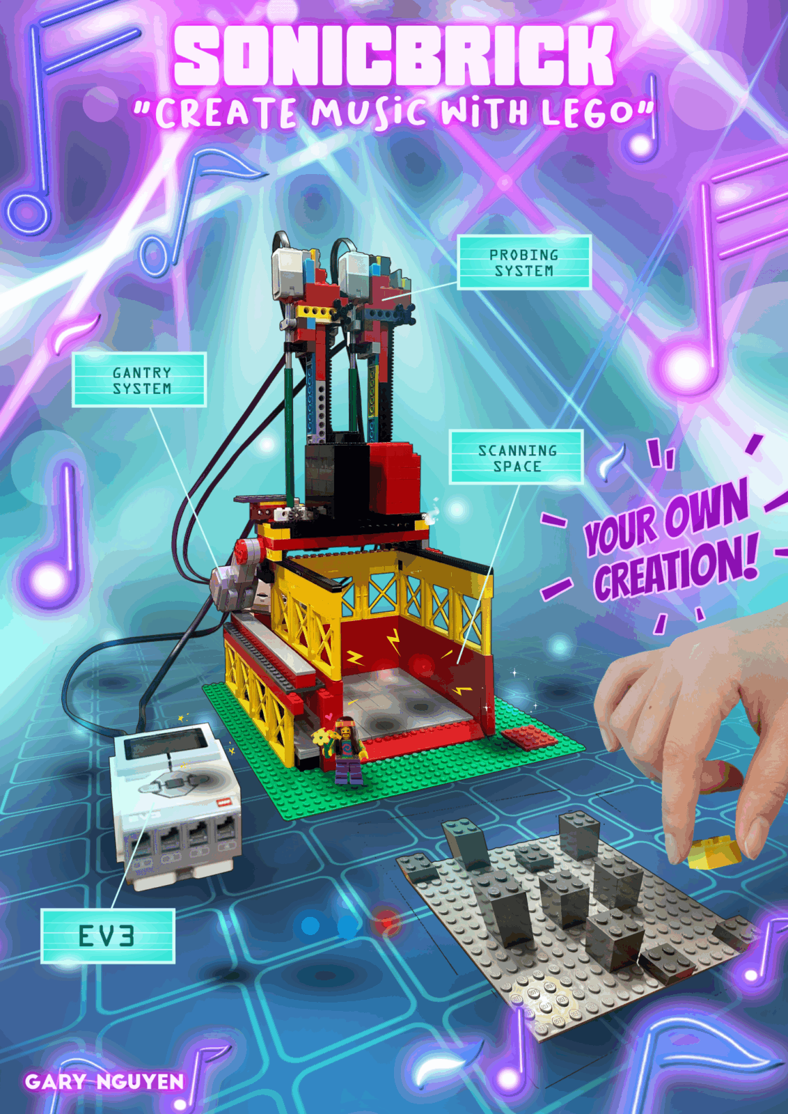 Sonic Brick reimagines LEGO as a musical instrument. Each tower and pattern you build is scanned by an EV3-powered machine that turns structure into melody. By connecting physical play with audio feedback, the project explores how sound can enhance creativity, learning, and tactile engagement.