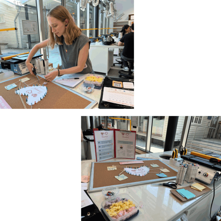The Collaborative Board extends this reflection into a communal space, where patients can contribute to a shared artwork by adding coloured wool strands or notes to emotion-based prompts. This collective display visually represents the ward’s shared experiences and fosters empathy and understanding among patients, families, and staff.